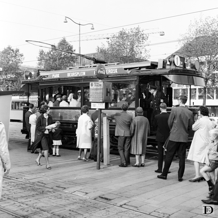 Museummotorrijtuig 1 aan de halte Kruisplein, ingetuigd als lijn 1 (Park - Beursplein - Honingerdijk). Hij rijdt echter Centraal Station - Mathenesserplein ter gelegenheid van een tentoonstelling „60