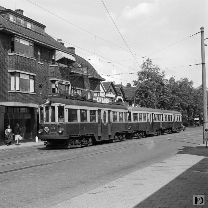 Een tram, die zojuist een aantal kinderen naar Scheveningen heeft gebracht, keert weer terug naar de Remise in Voorburg. Dit was het tramstel, waarmee iedere dag de BB-dienst werd gereden.
