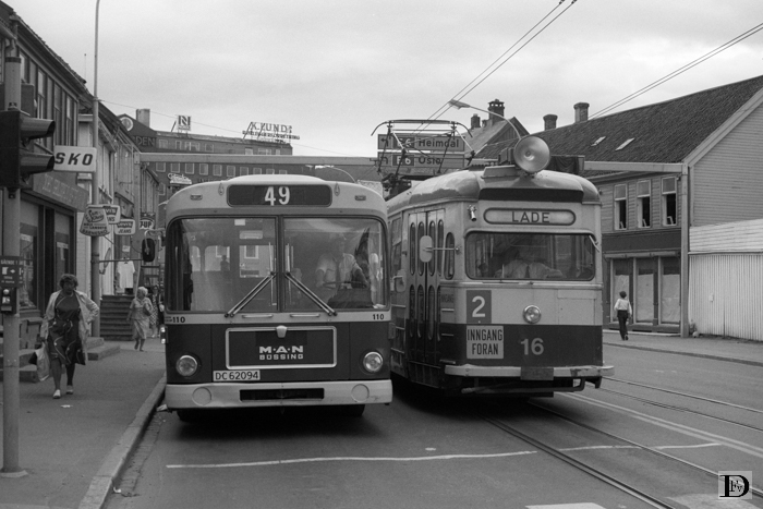 Rechts emr. 16 op lijn 2 richting Lade, links een bus.