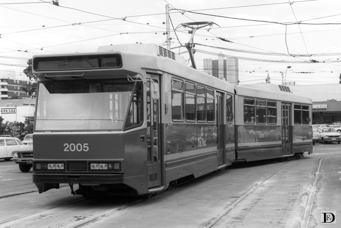 Gelede wagen 2005 rijdt South Melbourne Depot in.