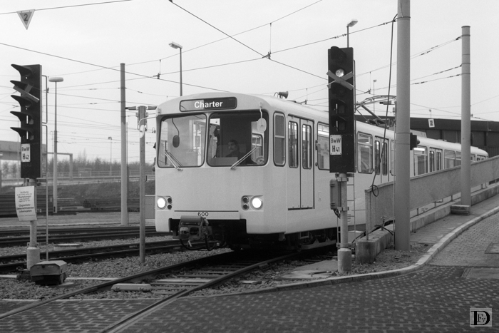 Het rijtuig maakte gedurende enkele weken testritten op de normaalsporige lijn Essen - Mülheim/Ruhr-Heissen, die overigens nog niet in exploitatie was. Teneinde bij meldingen over de mobilofoon verwarring met EVAG 1001 te vermijden, droeg de wagen het tijdelijke nummer 600.