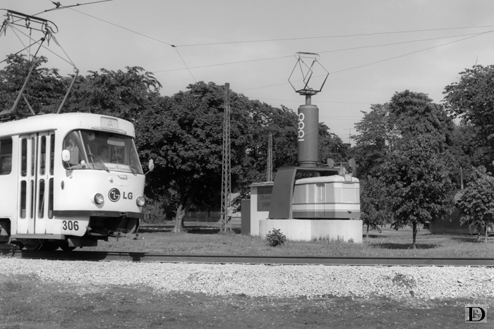Herinnering aan 110 jaar tram in Tallinn (1888 - 1998) in de lus. Links de kop van de 306, een kerende lijn 4.