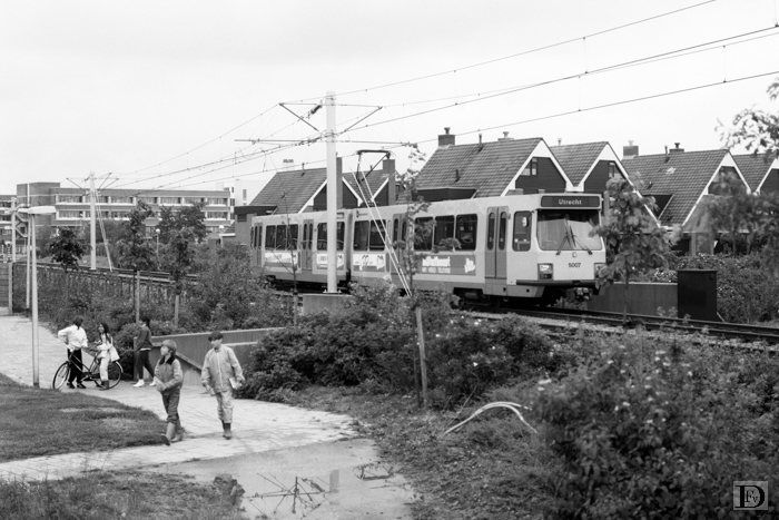 Tram richting Utrecht tussen de haltes Doorslag en Antonius Ziekenhuis.