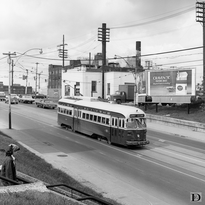 St. Clair Avenue West; de tram is één à twee haltes van beginpunt Keele verwijderd en gaat het spoorweg viaduct onderdoor (bijna).